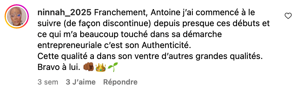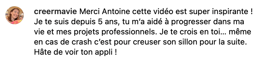 De nombreux abonnés commentent pour saluer le message de mes vidéos et leur authenticité. J'ai arrêté de me casser la tête à délivrer de la "valeur". Je me contente de documenter mon projet. Et ils adorent ça.