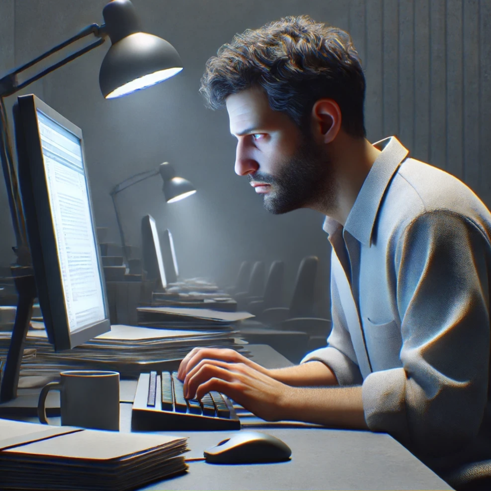 Tu arrives dans un bureau à la moquette grise et tu t’assoies devant un PC Windows.