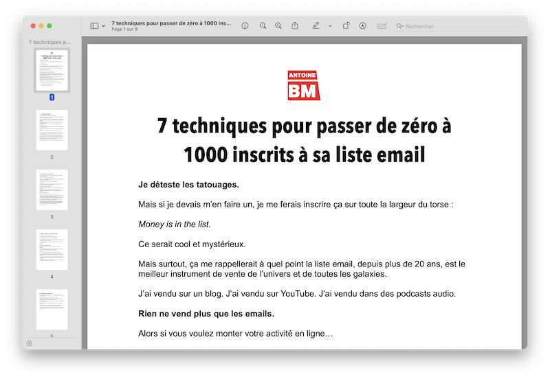En moins de 60 pages, tu vas découvrir la méthode exacte qui m’a permis de commencer à gagner ma vie sur le web à 21 ans, créer une chaîne YouTube à 130 000 abonnés, et vendre pour plus d’1,3 millions d’euros de formations en ligne.