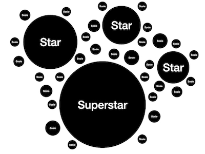 Dans les thématiques saturées, un petit nombre de “stars” raflent 90% de l’attention et des bénéfices.