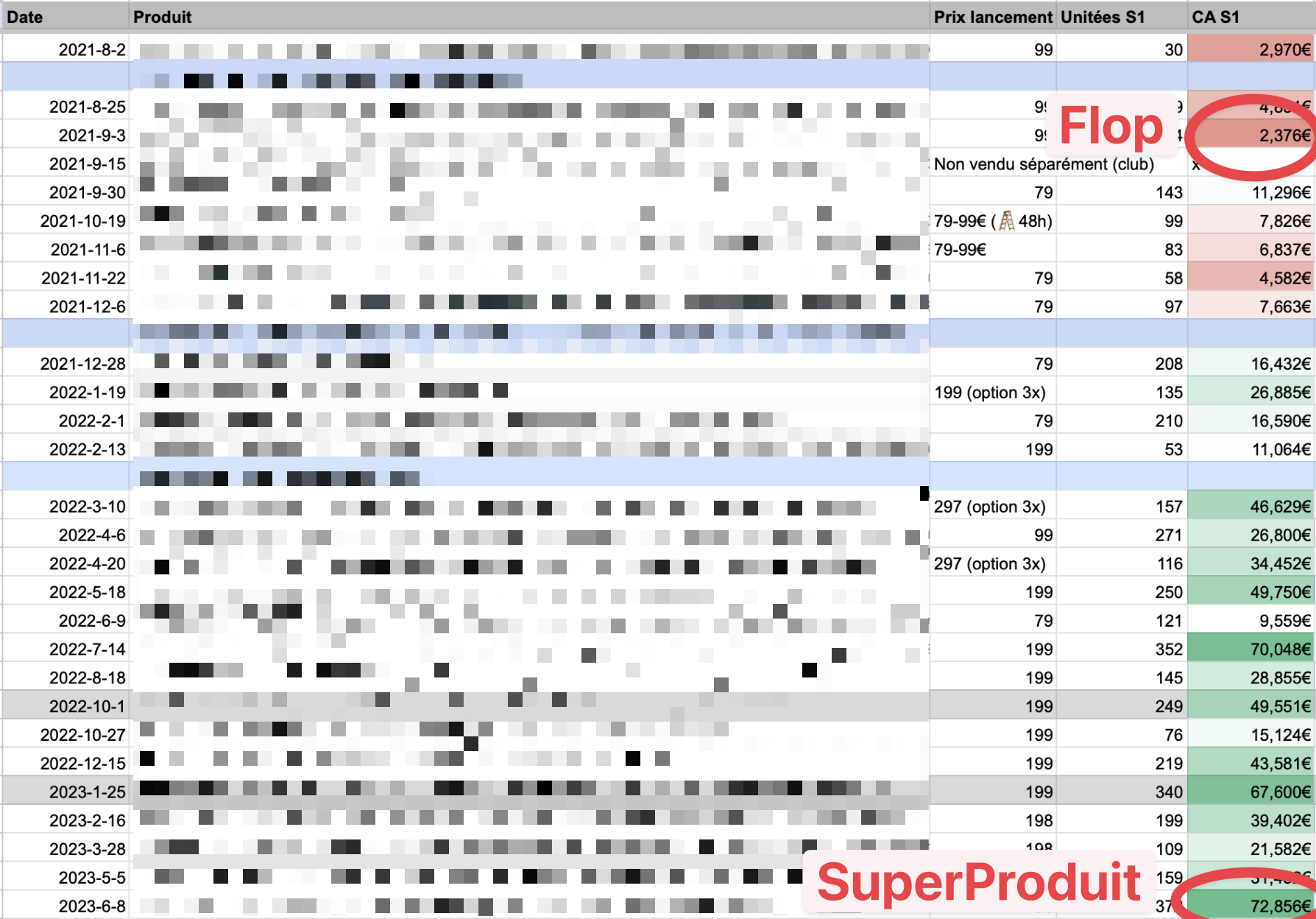 Entre 2021 et 2023, mon pire lancement a généré 2376 €.